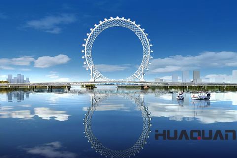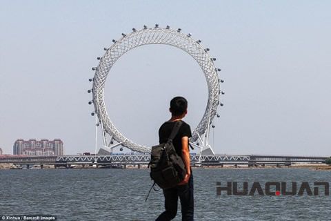 根據(jù)英國《每日郵報》5月17日的報道,位于山東省濰坊濱海經(jīng)濟開發(fā)區(qū)的白浪河摩天輪(也稱“渤海之眼”)已經(jīng)建設(shè)完成并已于2017年勞動節(jié)期間投入試運行。也許世界各地的摩天輪確實為數(shù)眾多,但“渤海之眼”卻一連創(chuàng)造了三項世界之 ,即世界上的無軸式摩天輪、首例編織網(wǎng)格形式摩天輪和 無軸式輪橋合一摩天輪,這事兒只有濰坊做到了。報道進一步指出,這座巨型摩天輪以“白浪河大橋摩天輪”命名,因為它建在長1,771英尺(約539.8米)的白浪河大橋上,該摩天輪高475英尺(約144.78米),共有36個座艙,每個座艙可容納10人,轉(zhuǎn)完一圈需要28分鐘……在摩天輪上近可俯視波濤翻滾的白浪河,遠可眺望煙波浩淼的渤海灣,所以摩天輪又被稱為“渤海之眼”,并將成為“鳶都”濰坊的地標性建筑。